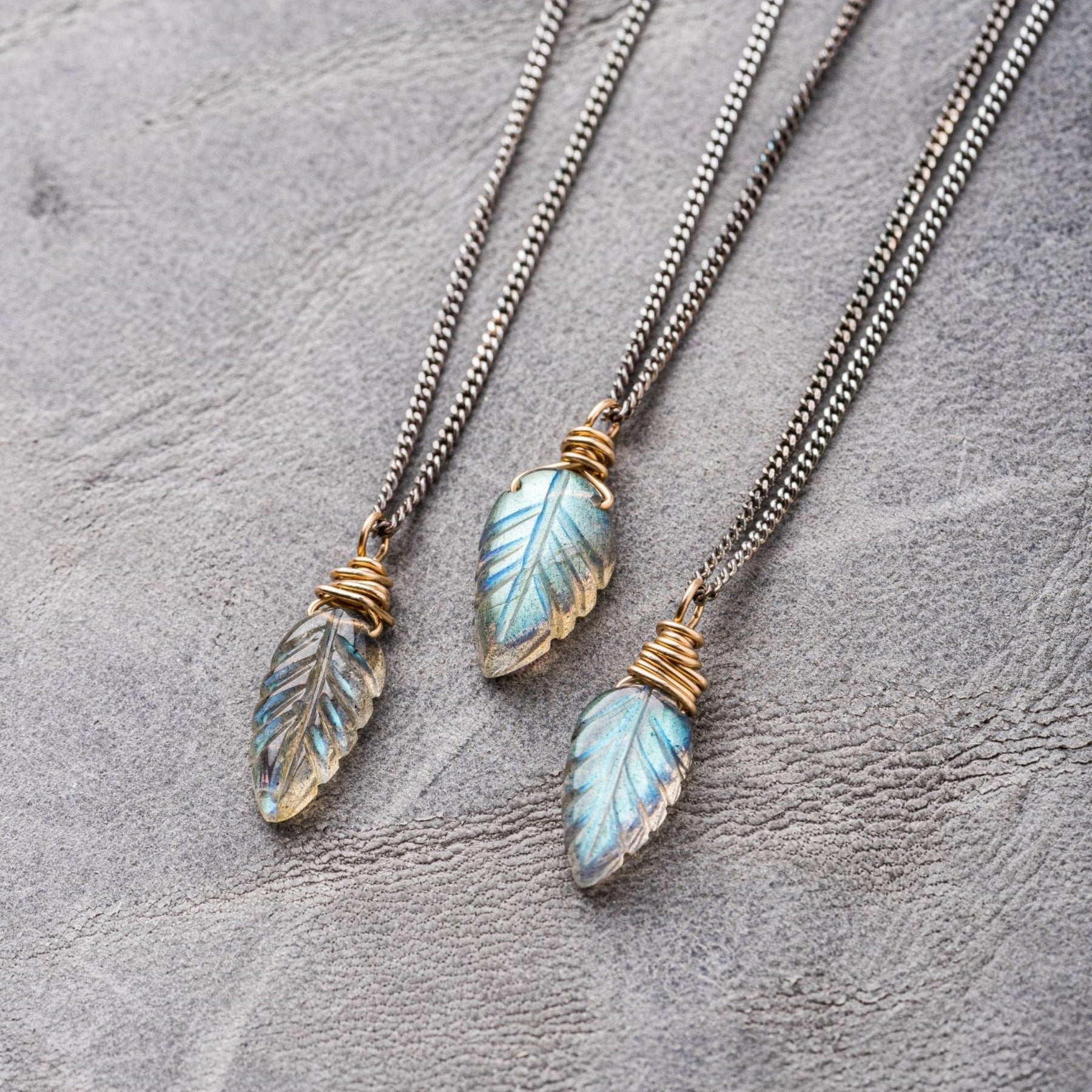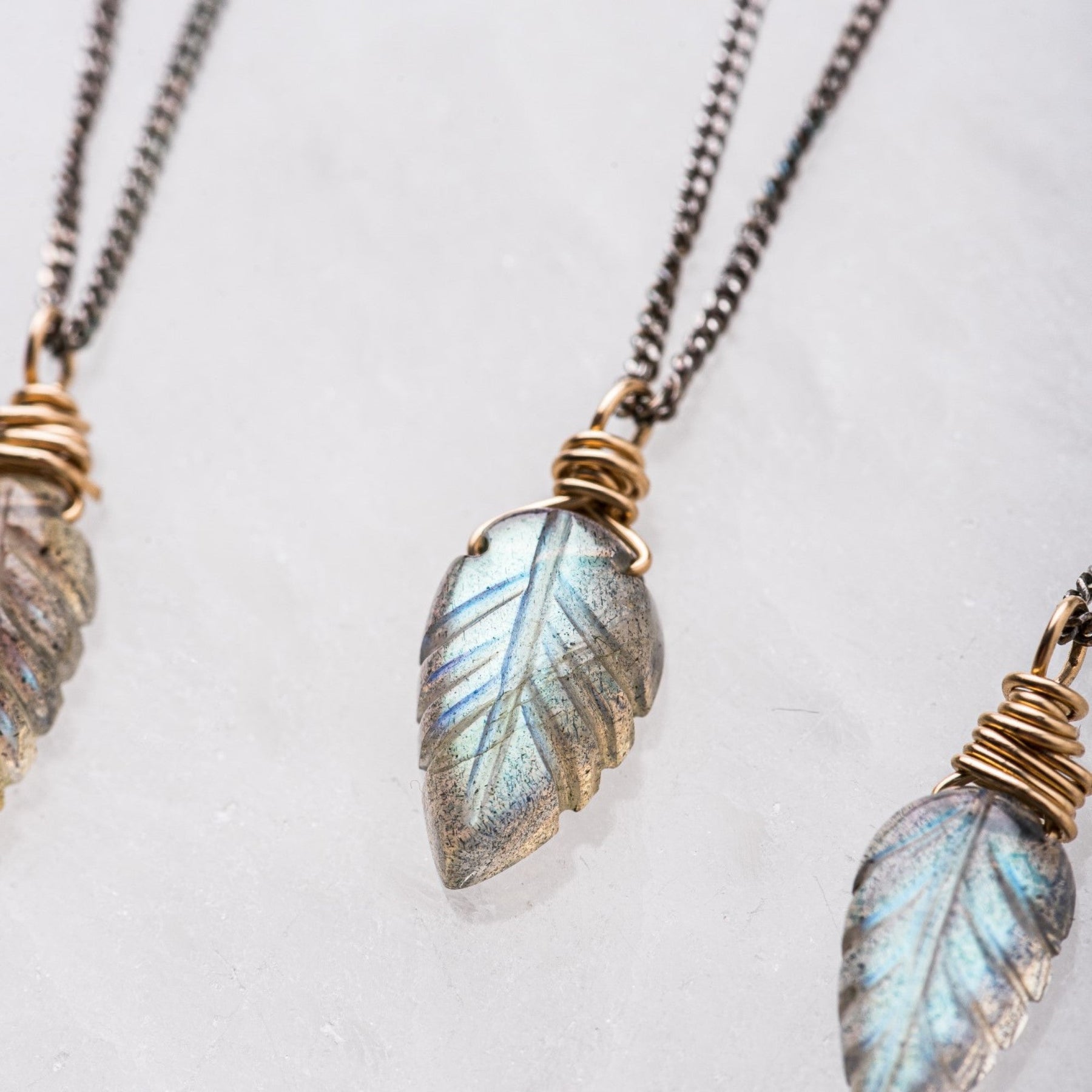 Regular price $ 79.00This necklace features expertly hand-carved labradorite, combined with both gold and silver elements, resulting in a simple yet stylish piece.