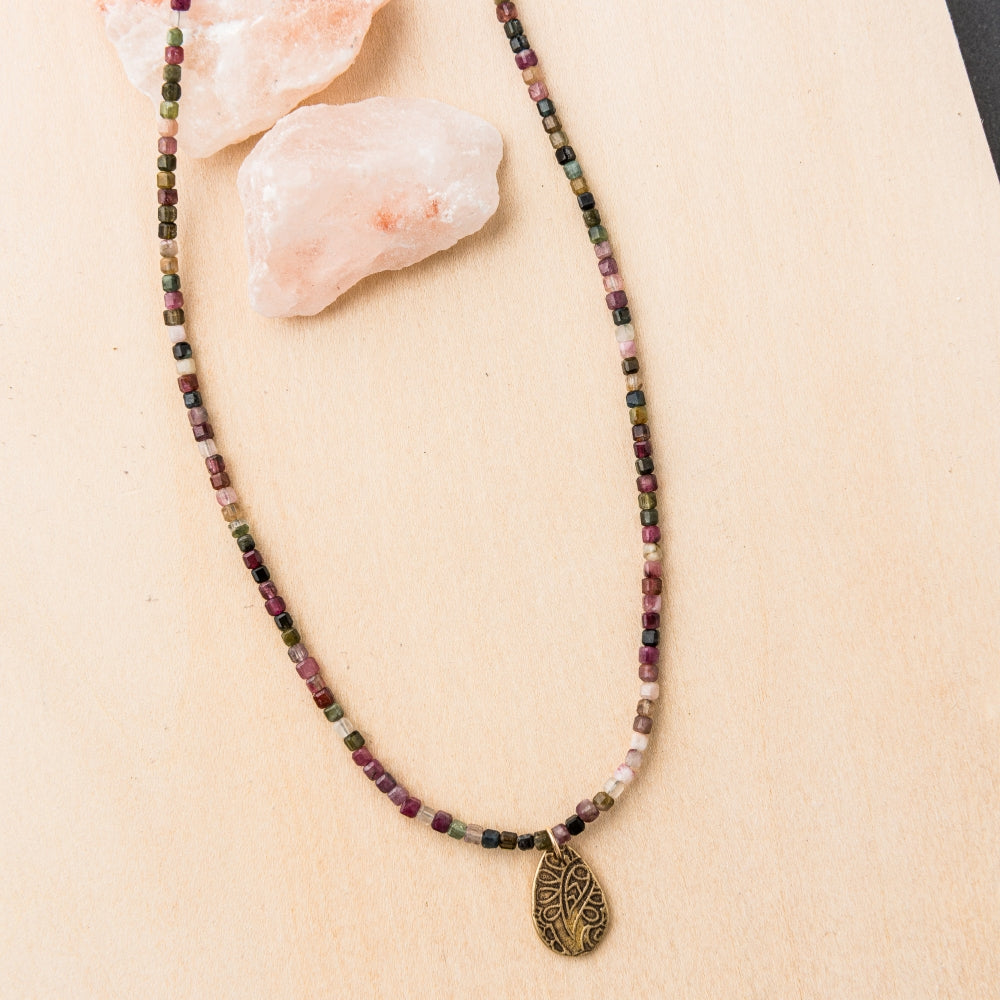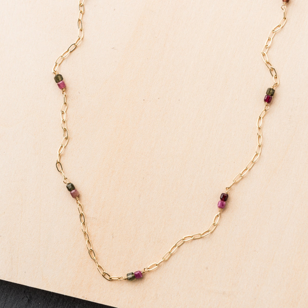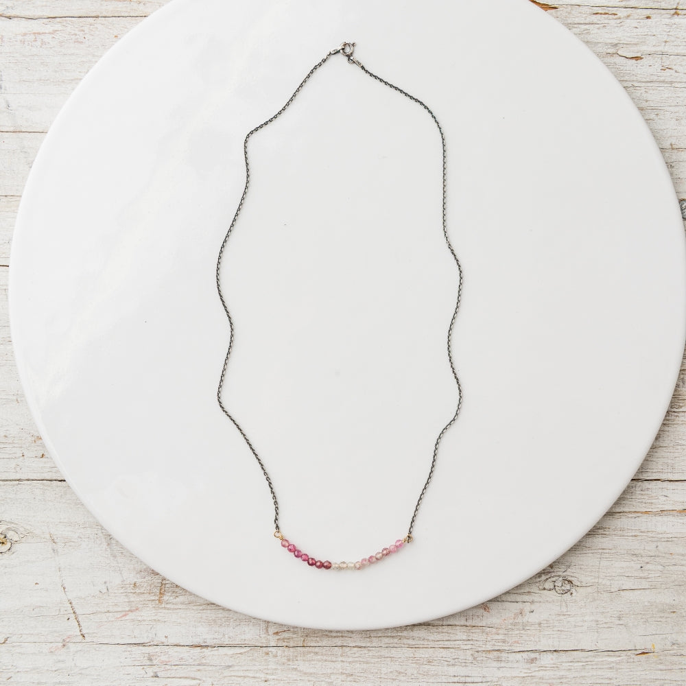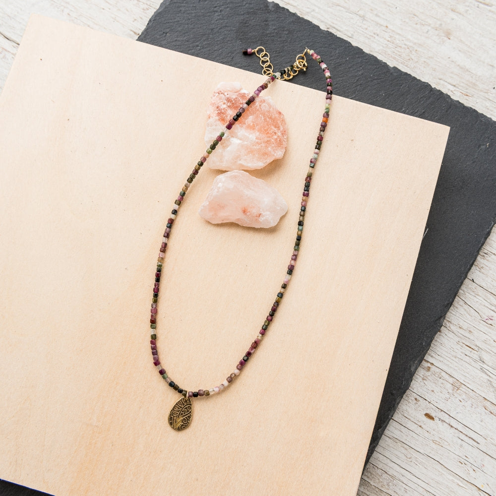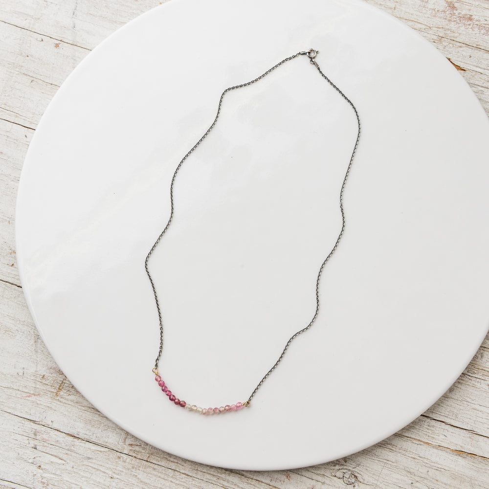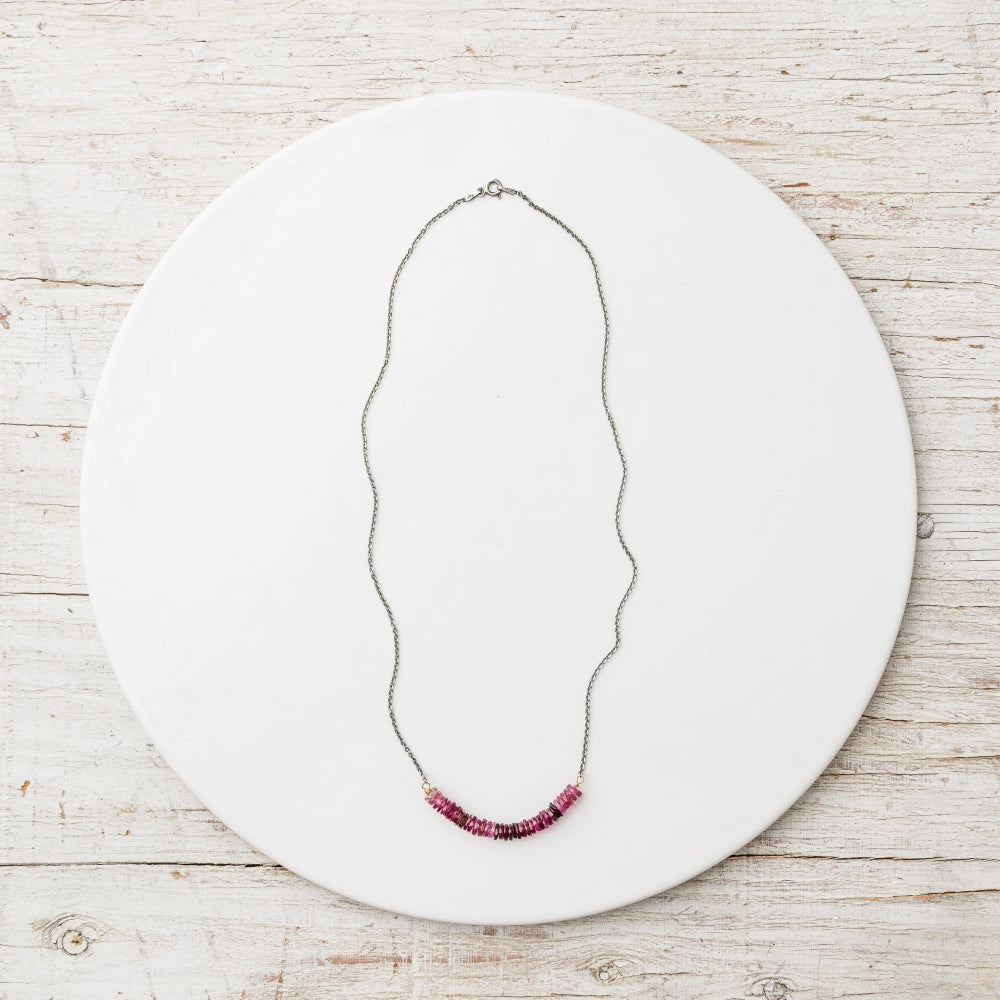 Stacked pink tourmaline stones glow within bronze frames—an elegant pairing of vibrant color and warm metal, crafted with modern sophistication.