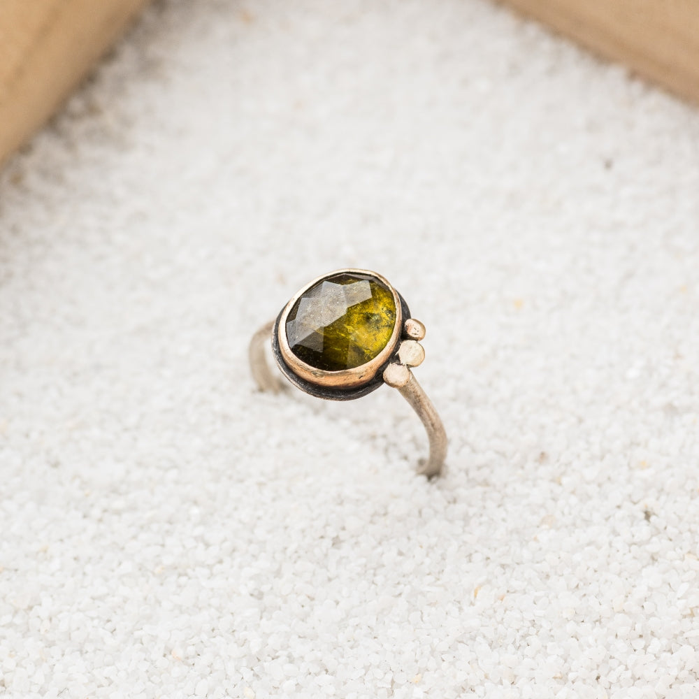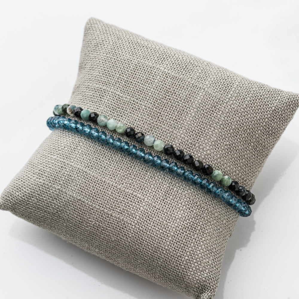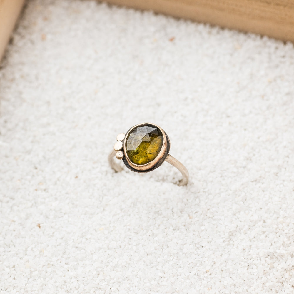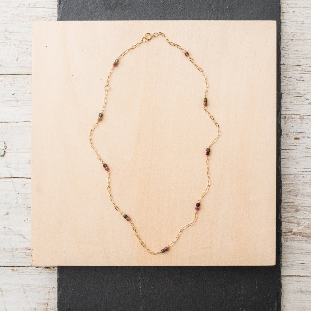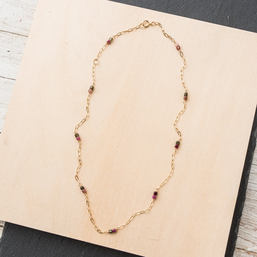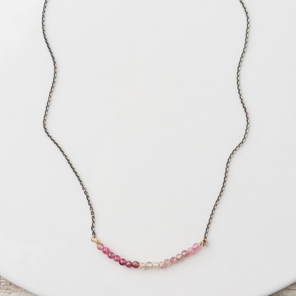 Stacked pink tourmaline stones glow within bronze frames—an elegant pairing of vibrant color and warm metal, crafted with modern sophistication.