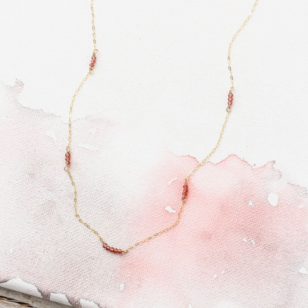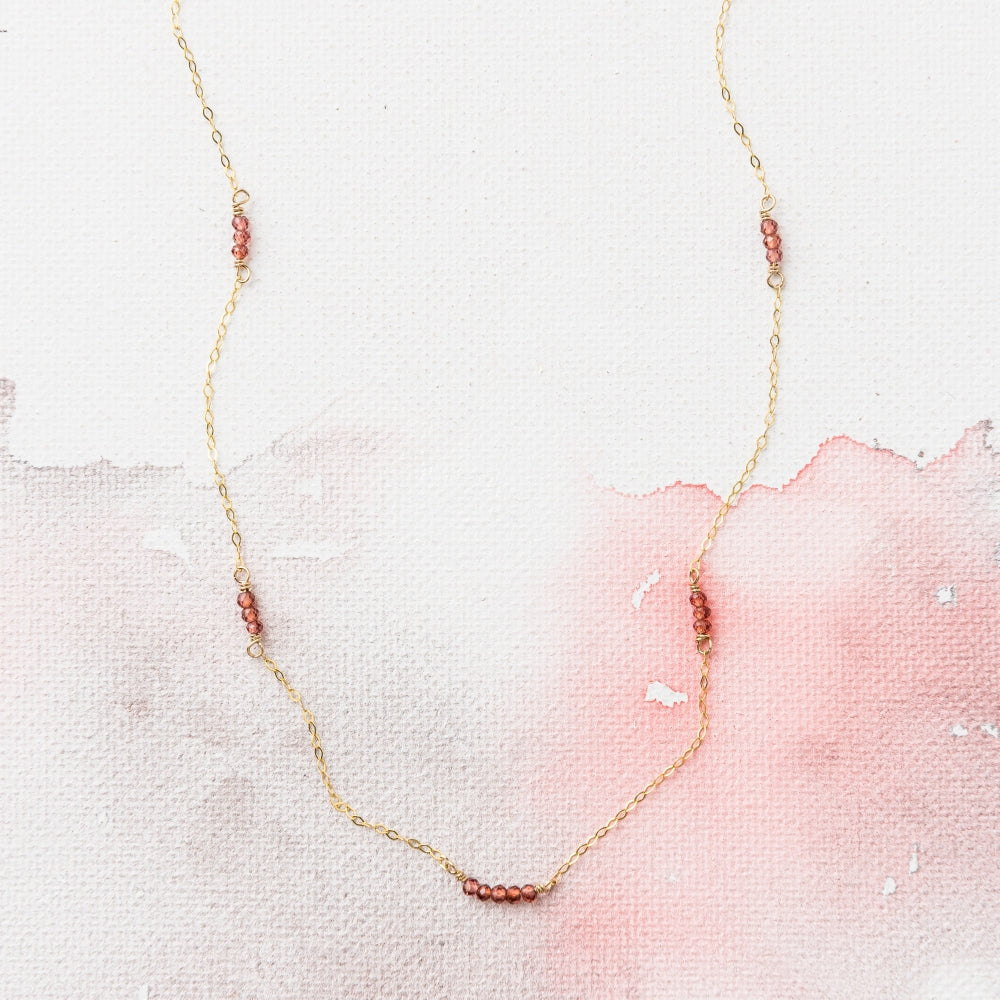 A bronze pendant pairs with smoky quartz and a gray pearl on luminous labradorite—an elegant symbol of grounding, guidance, and timeless beauty.
