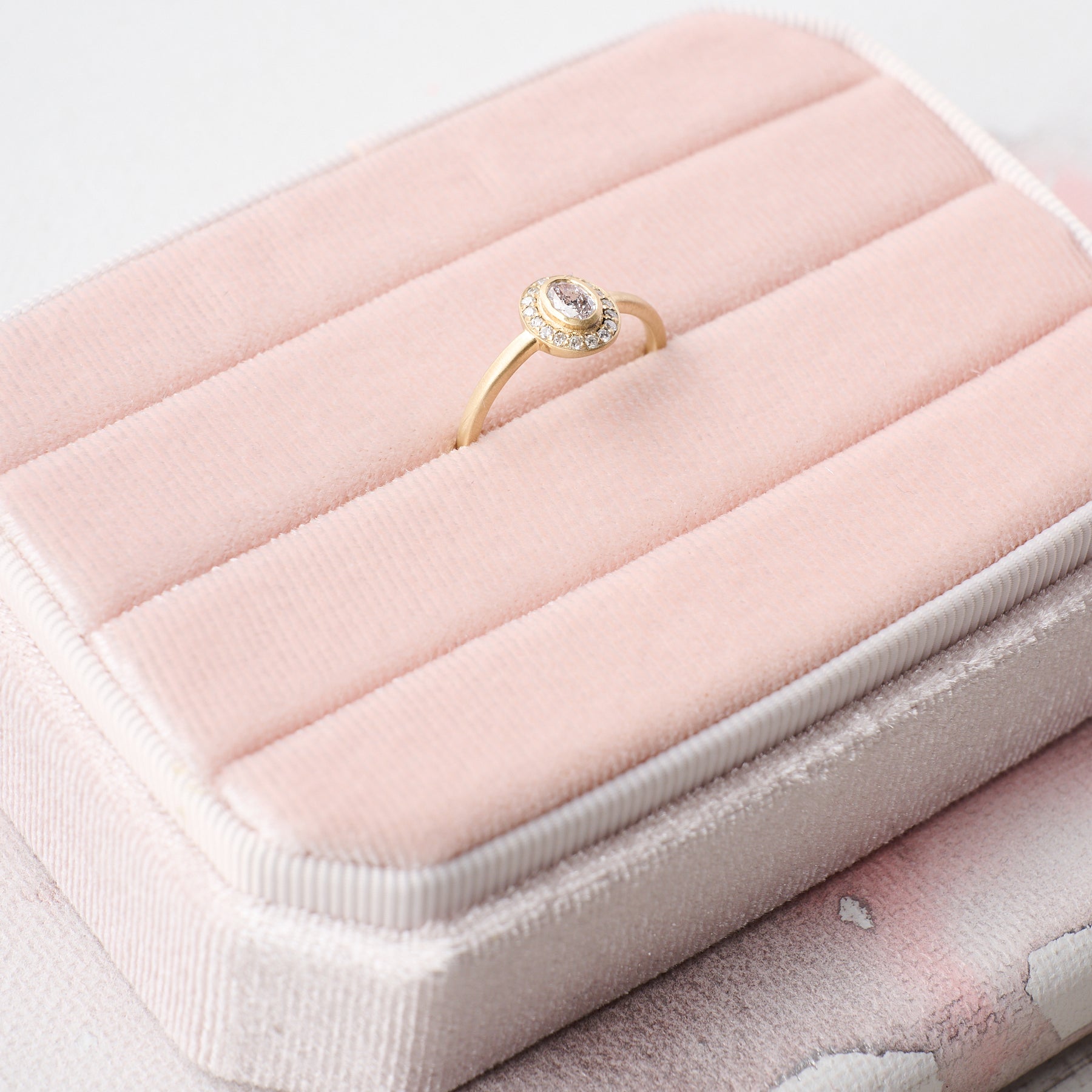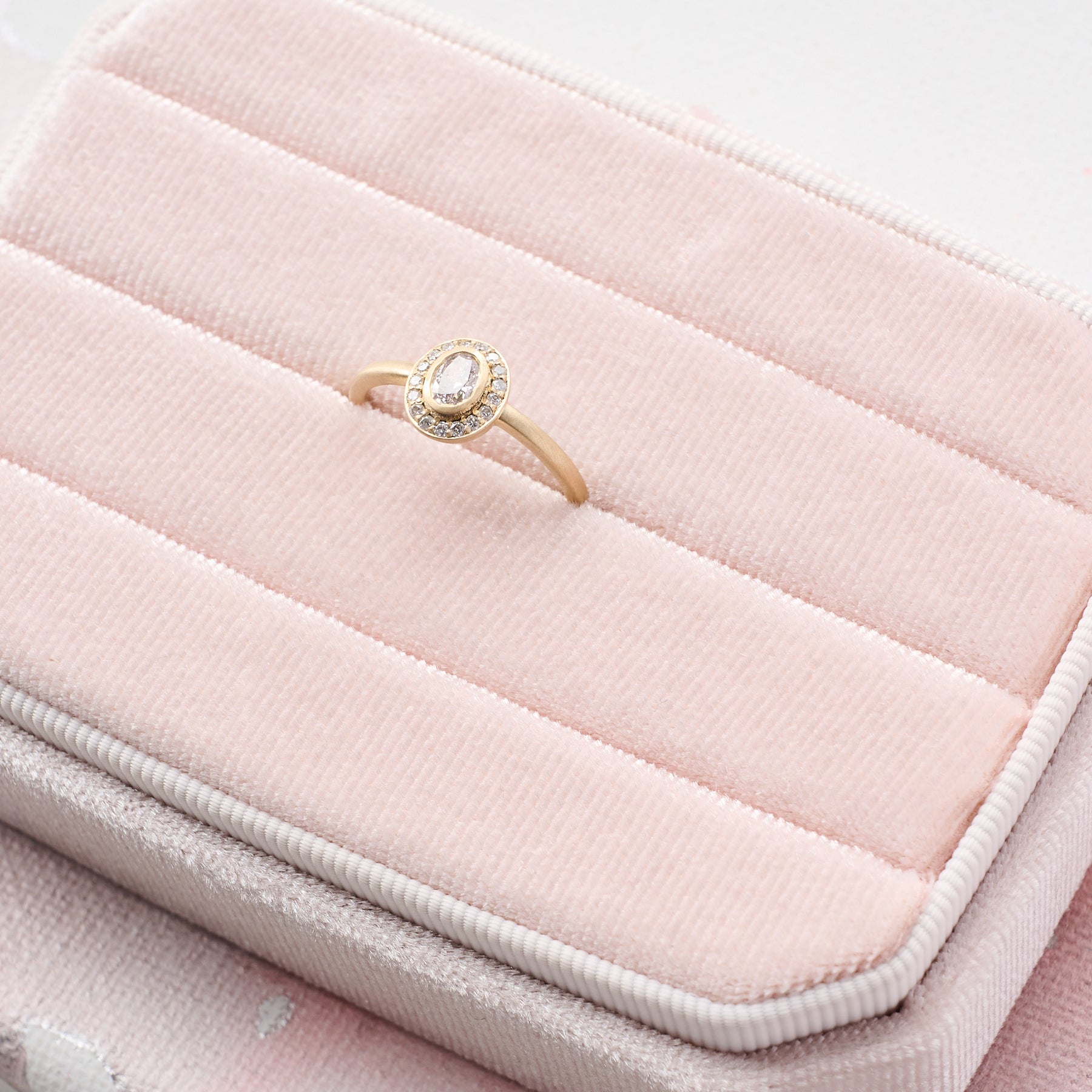 - Stunning faceted oval lab-grown diamond center