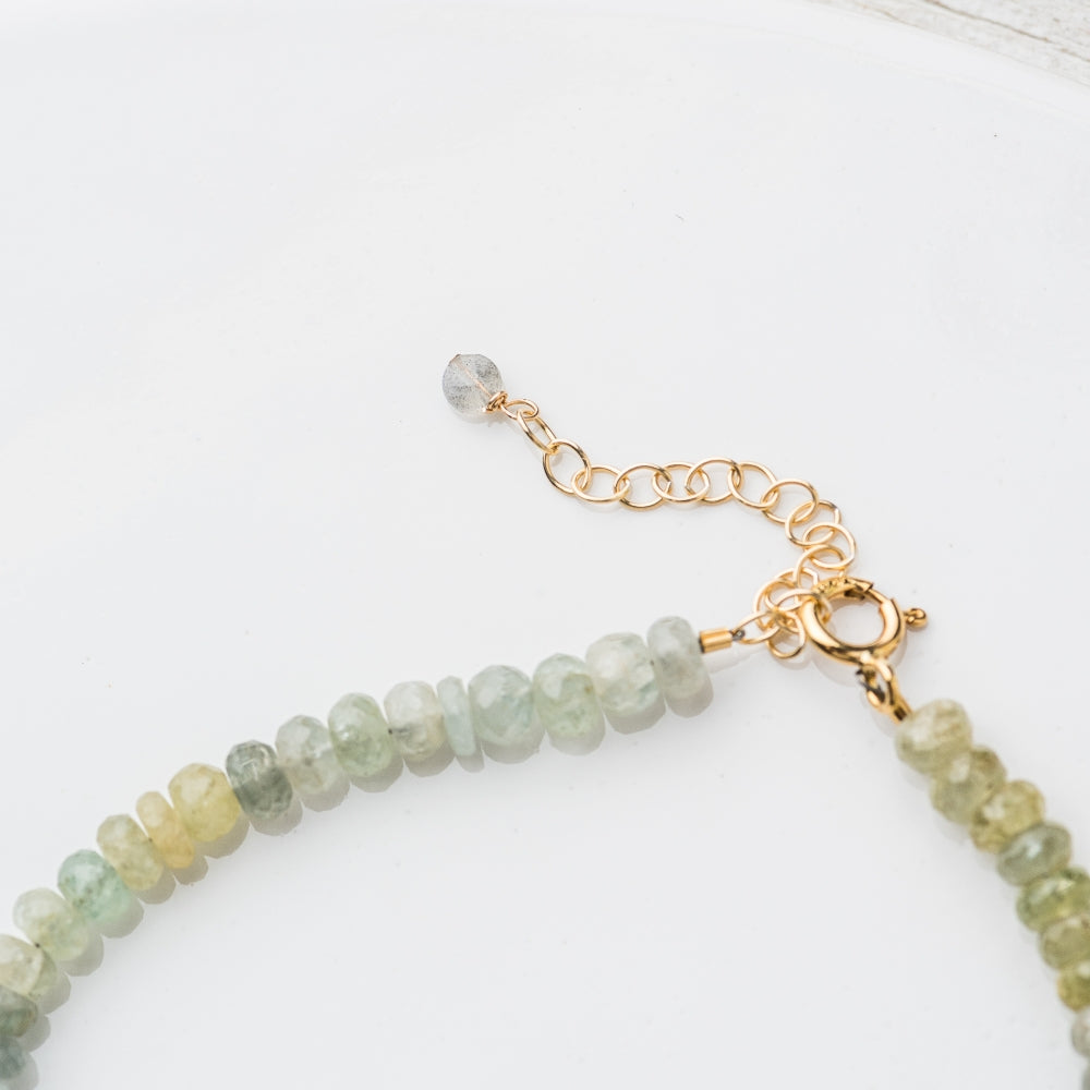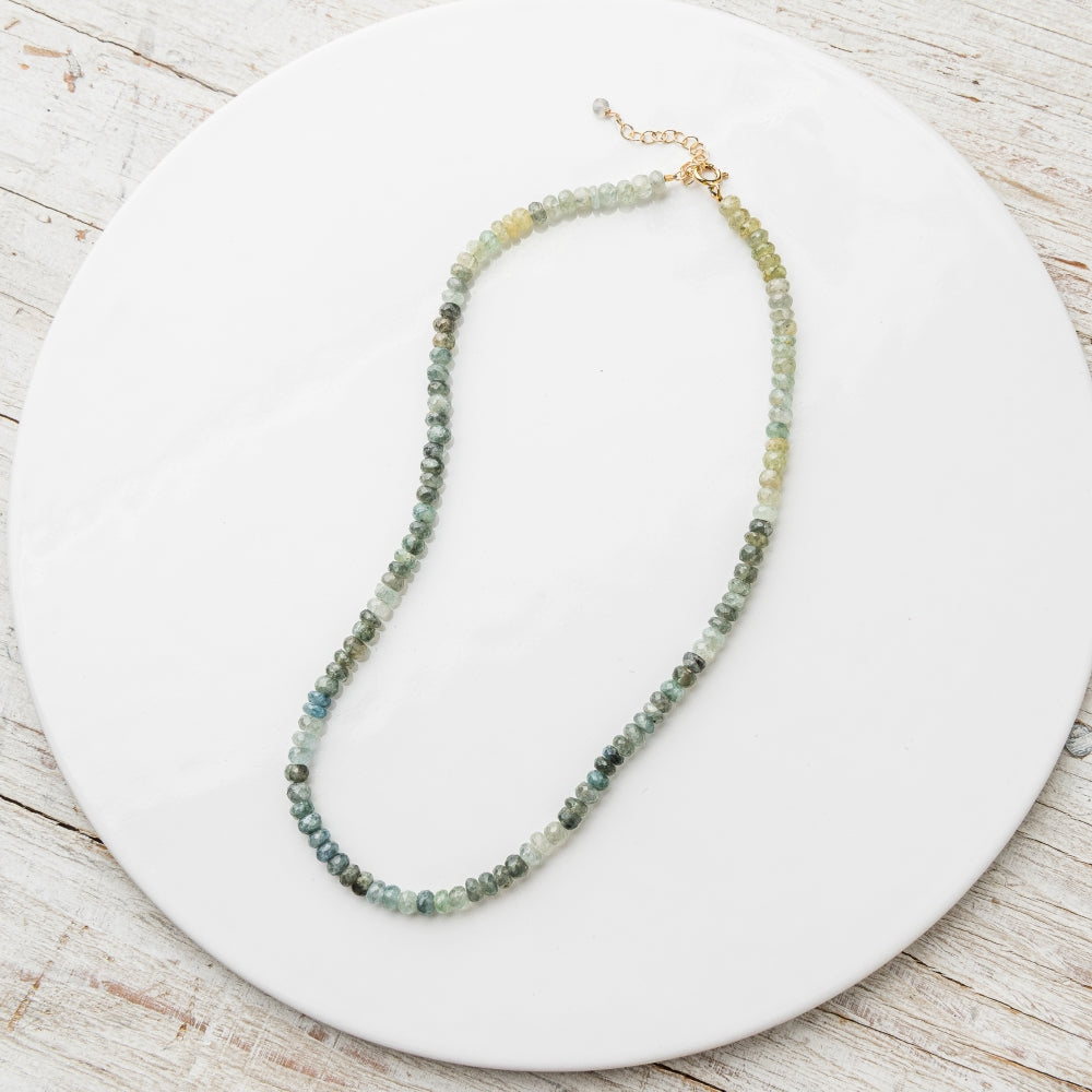 Regular price $ 124.00A strand of moss aquamarine shimmers with subtle hues, offering a refined balance of natural depth and timeless elegance.