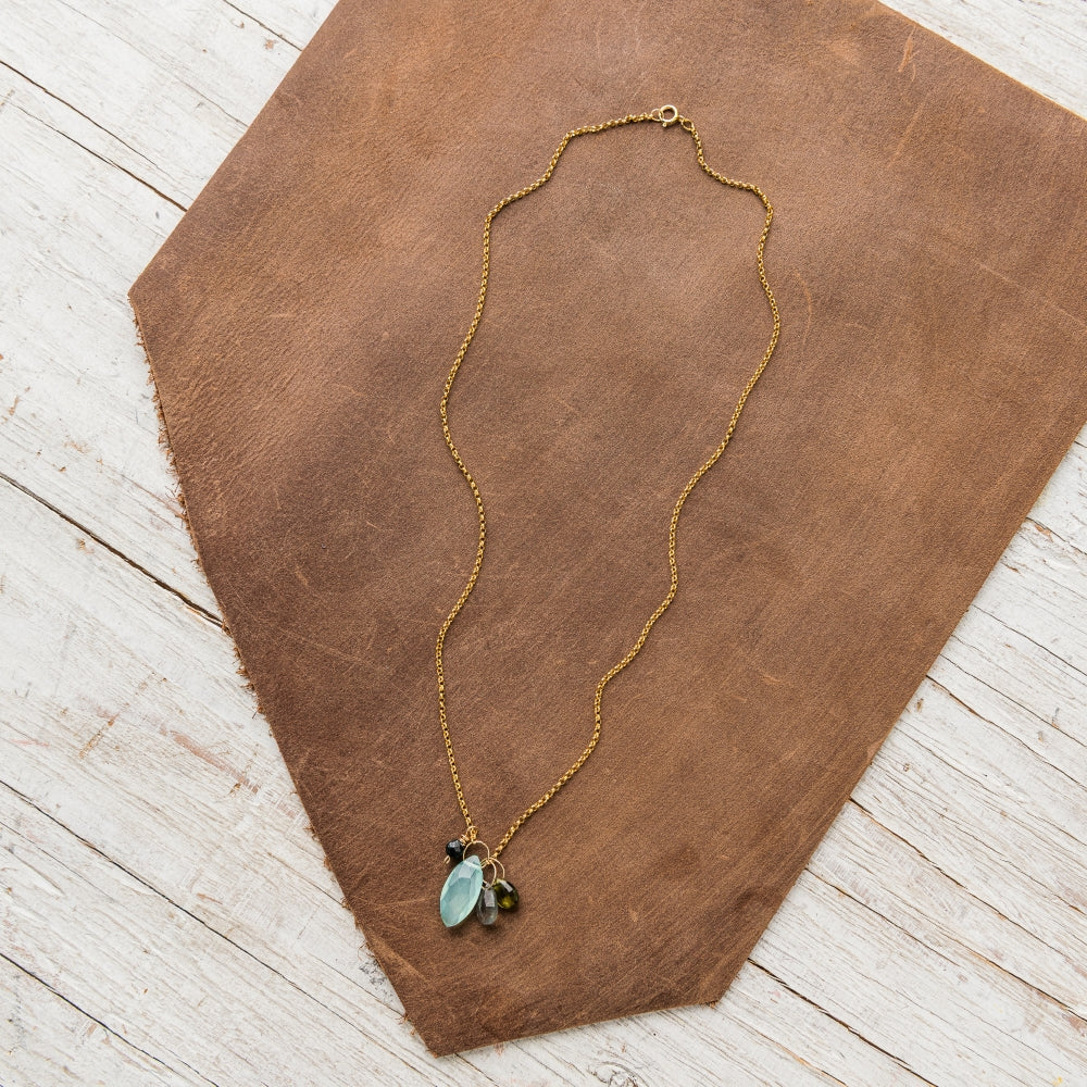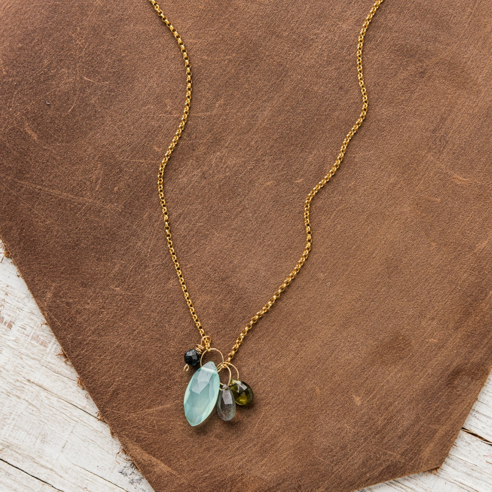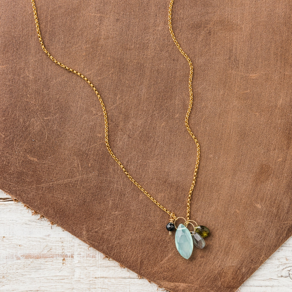 This beautiful necklace features a drop of chalcedony, a semi-precious gemstone known for its serene energy and soft blue color. The 18 ¼-inch chain ensures a secure, comfortable fit with a spring ring clasp closure. A perfect way to add elegance and style to any look. Stone drop measures approximately 8x12mm.