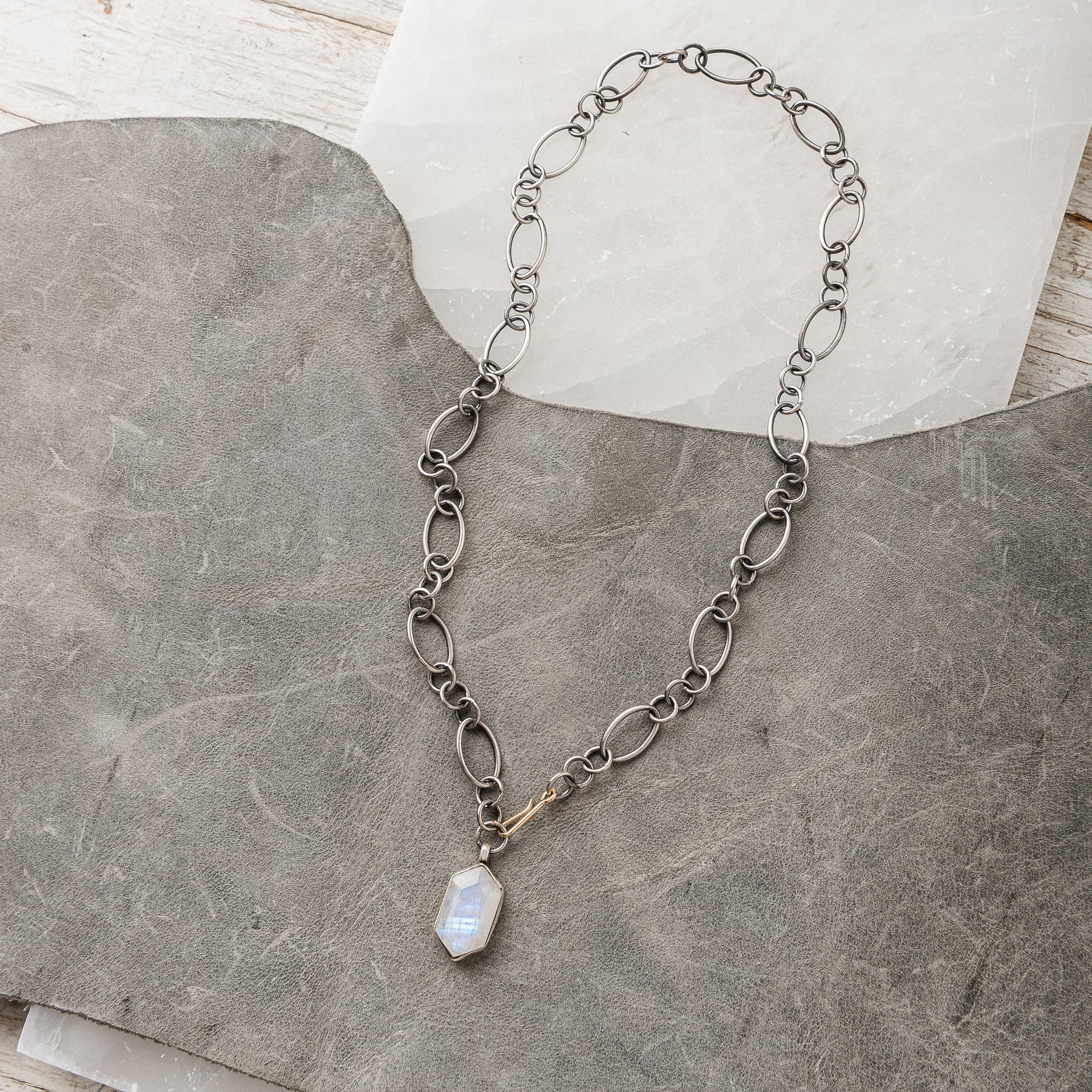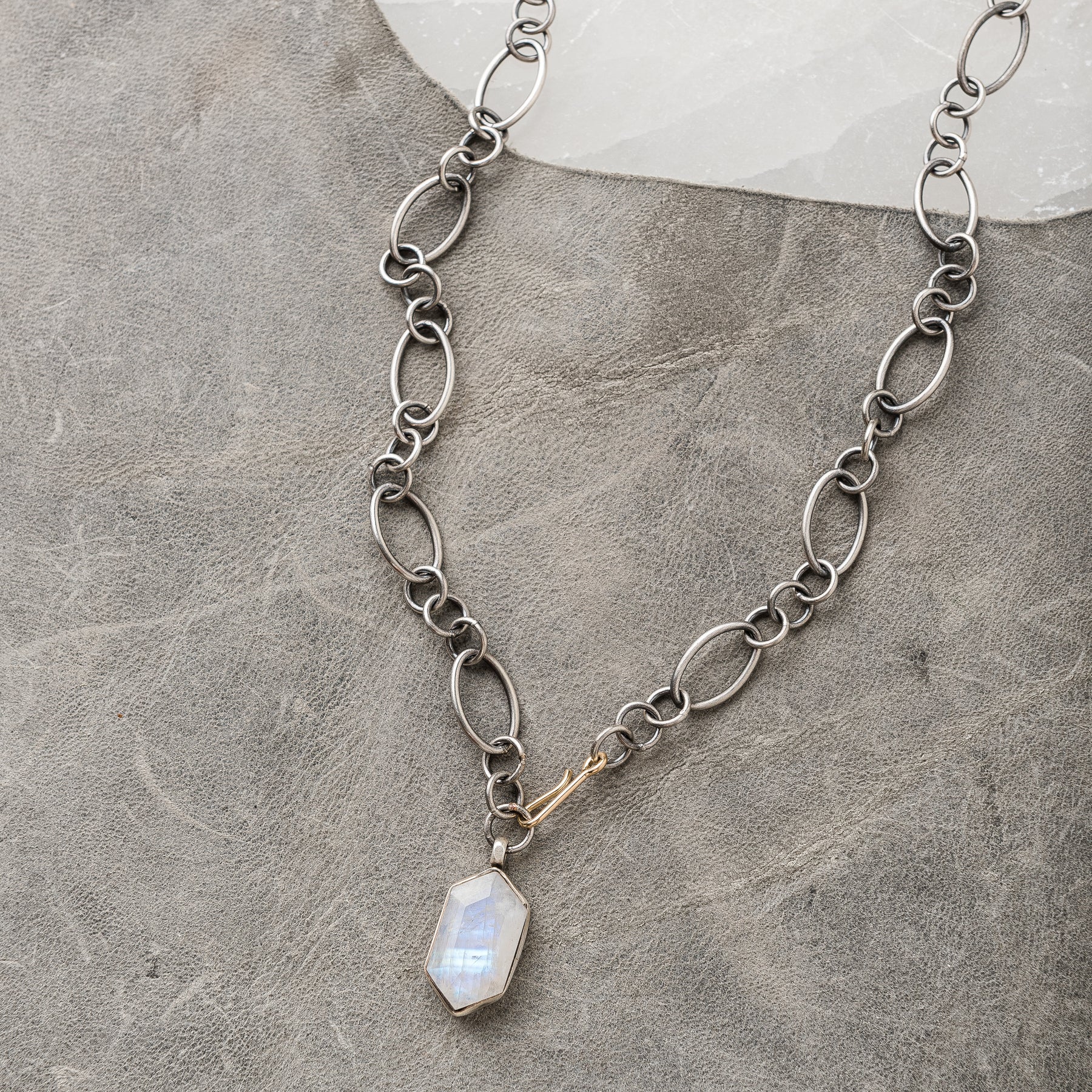 Moonstone, the birthstone for June, is thought to bring balance, harmony, and hope while enhancing creativity, compassion, endurance, and inner confidence. These one-of-a-kind designs are all created in designer Carrie Schafer's private home studio and feature all types of moonstones.
