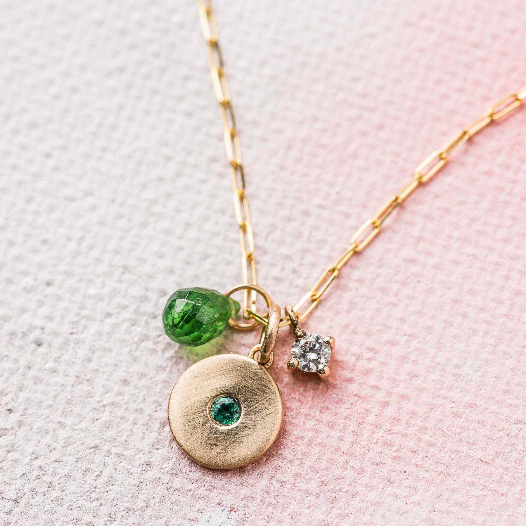 - Pendant falls just under ¼ inch from the chain