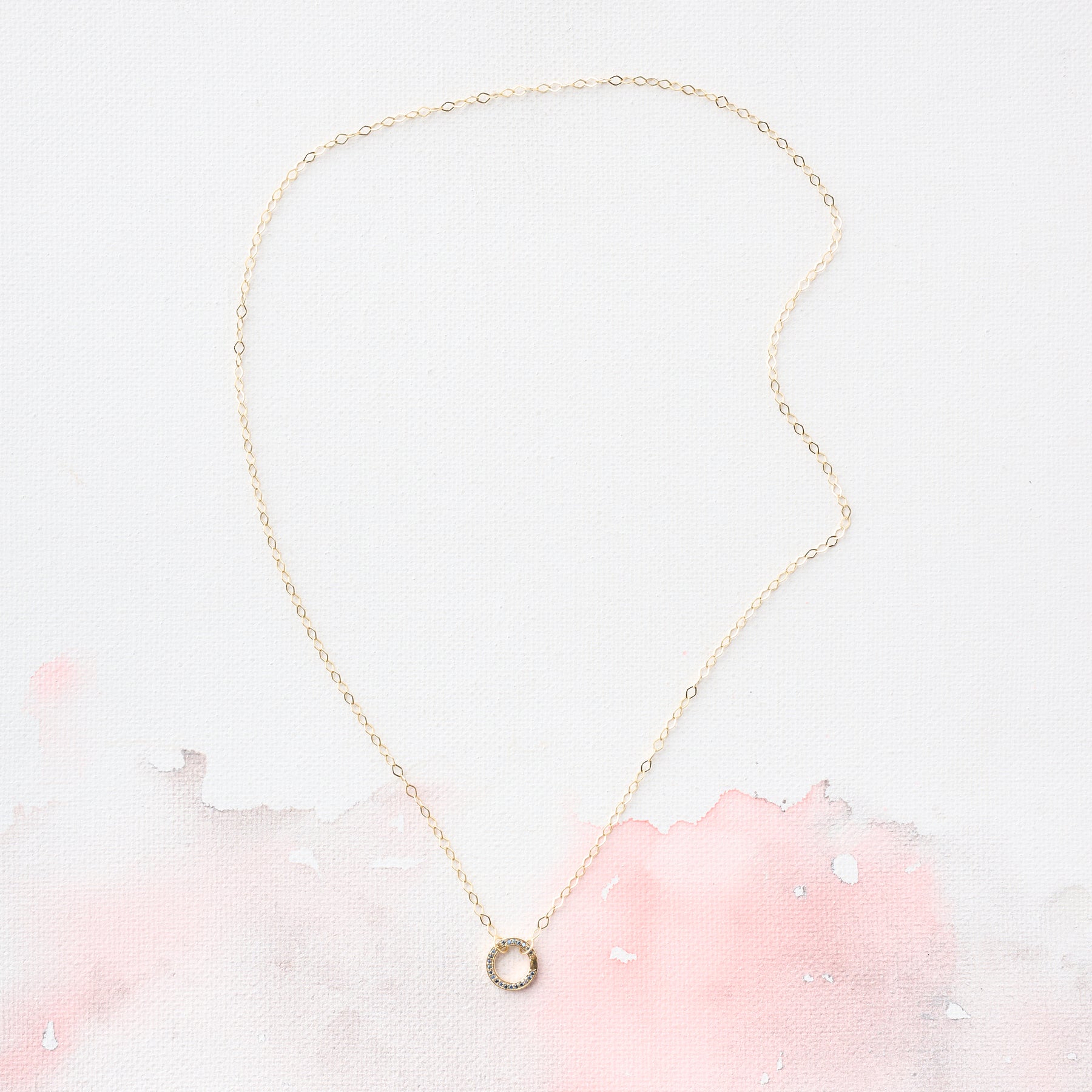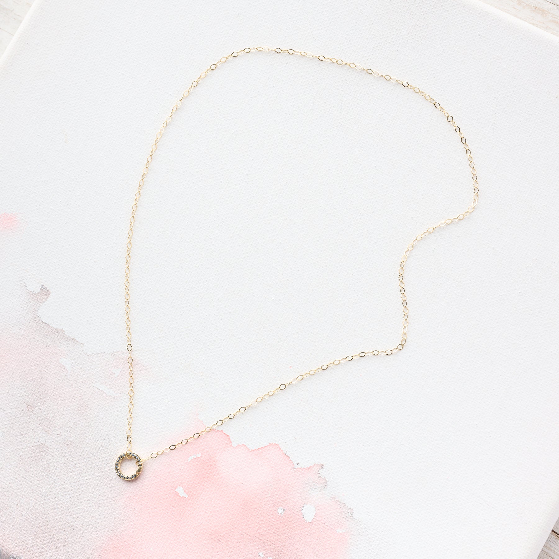 A diamond-set circle clasp shines in 14k gold, blending symbolic elegance with bold design for a refined, statement-making silhouette.