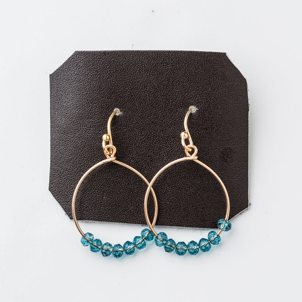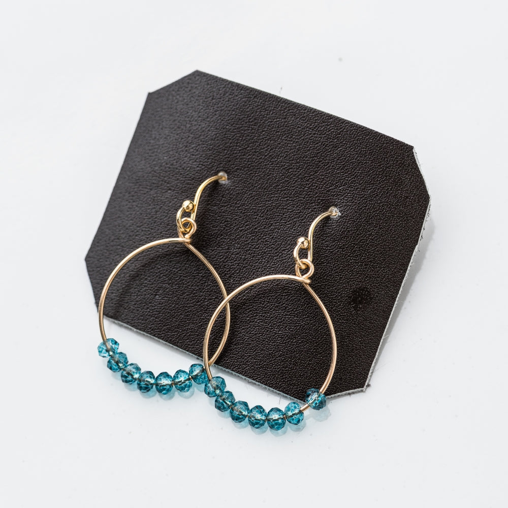Neon blue quartz contrasts beautifully against gold in this simple hoop earring.
