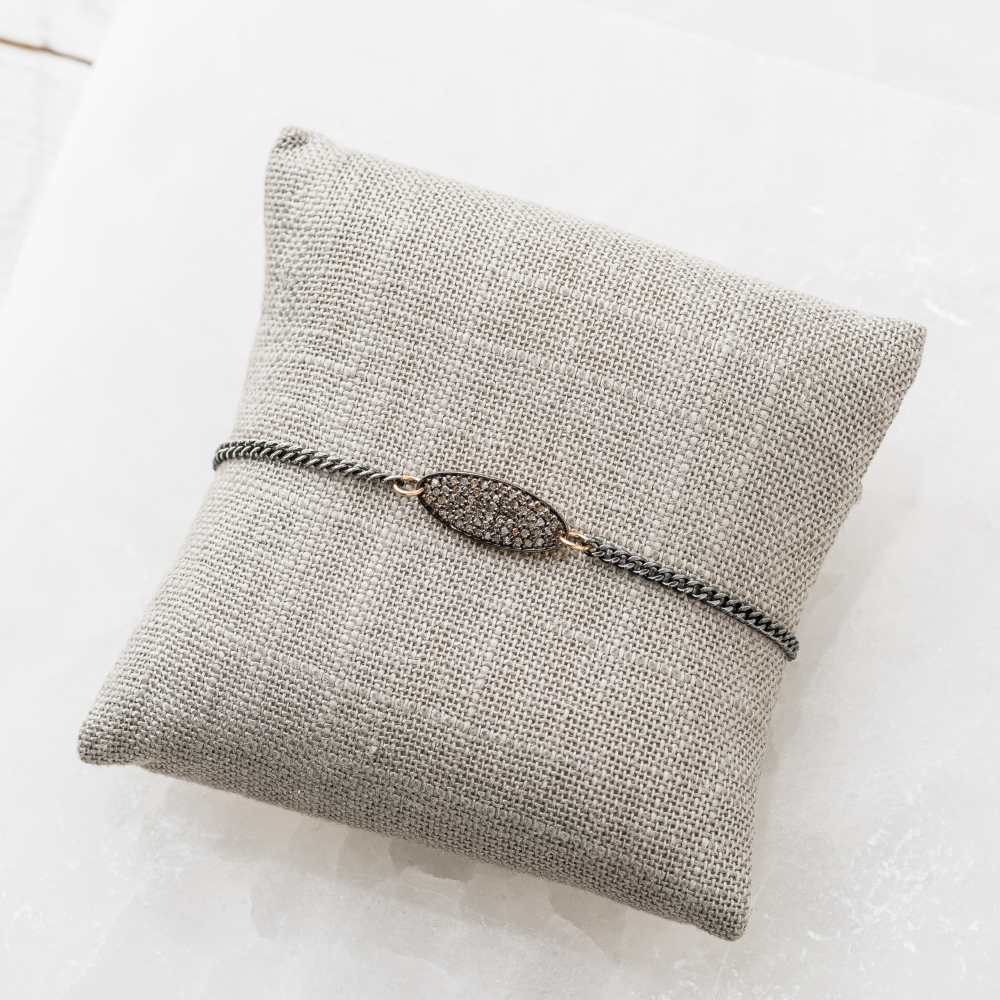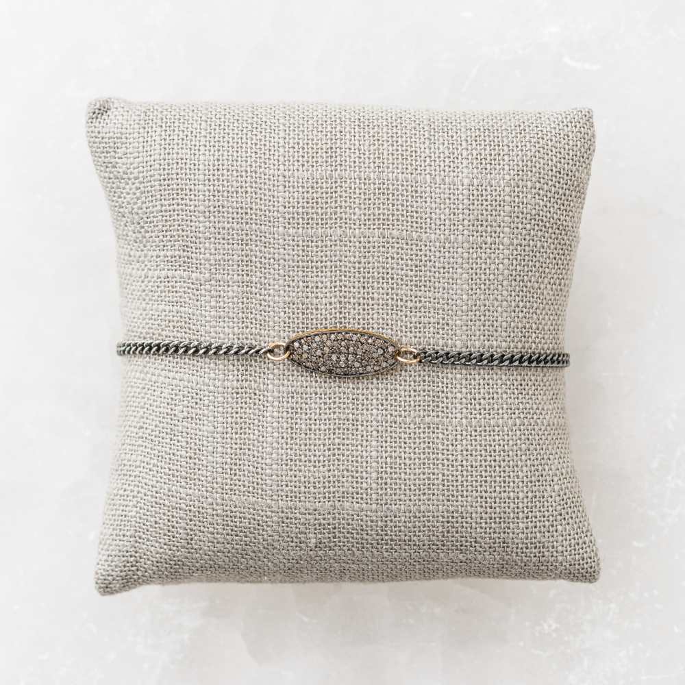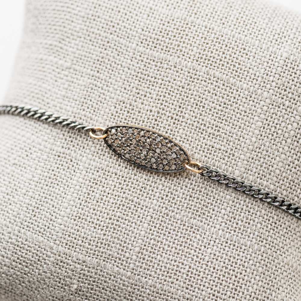 Regular price $ 199.00A little edgy, this one-of-a-kind piece features a stunning pave diamond pendant connected by sterling silver chain. Mixed metal vibes for the win!